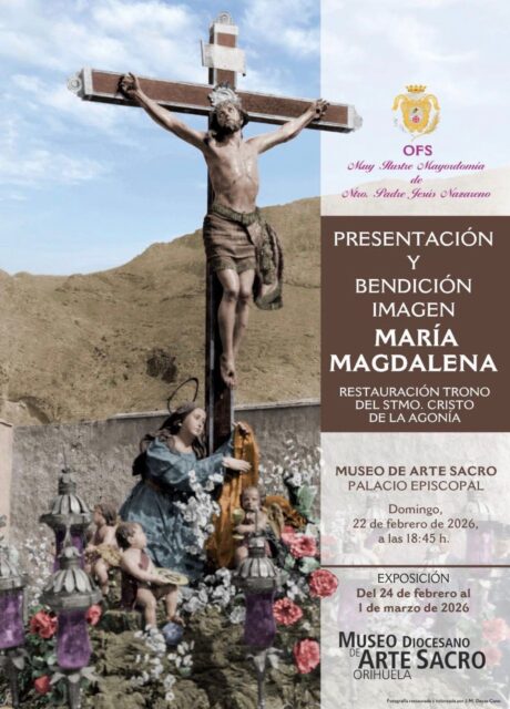 El próximo domingo, 22 de febrero de 2026, a las 18:45 horas, se presentará y bendecirá la escultura de María Magdalena, obra de los hermanos