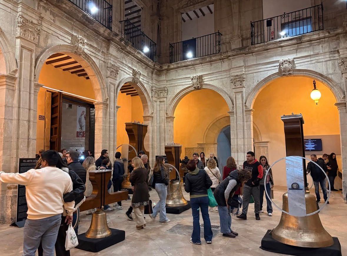 El gran atractivo fue la exposición gratuita y temporal “Campanas. La voz de Dios”, donde el público pudo ver de cerca e incluso tocar las campanas de la Catedral de Orihuela, recientemente restauradas.