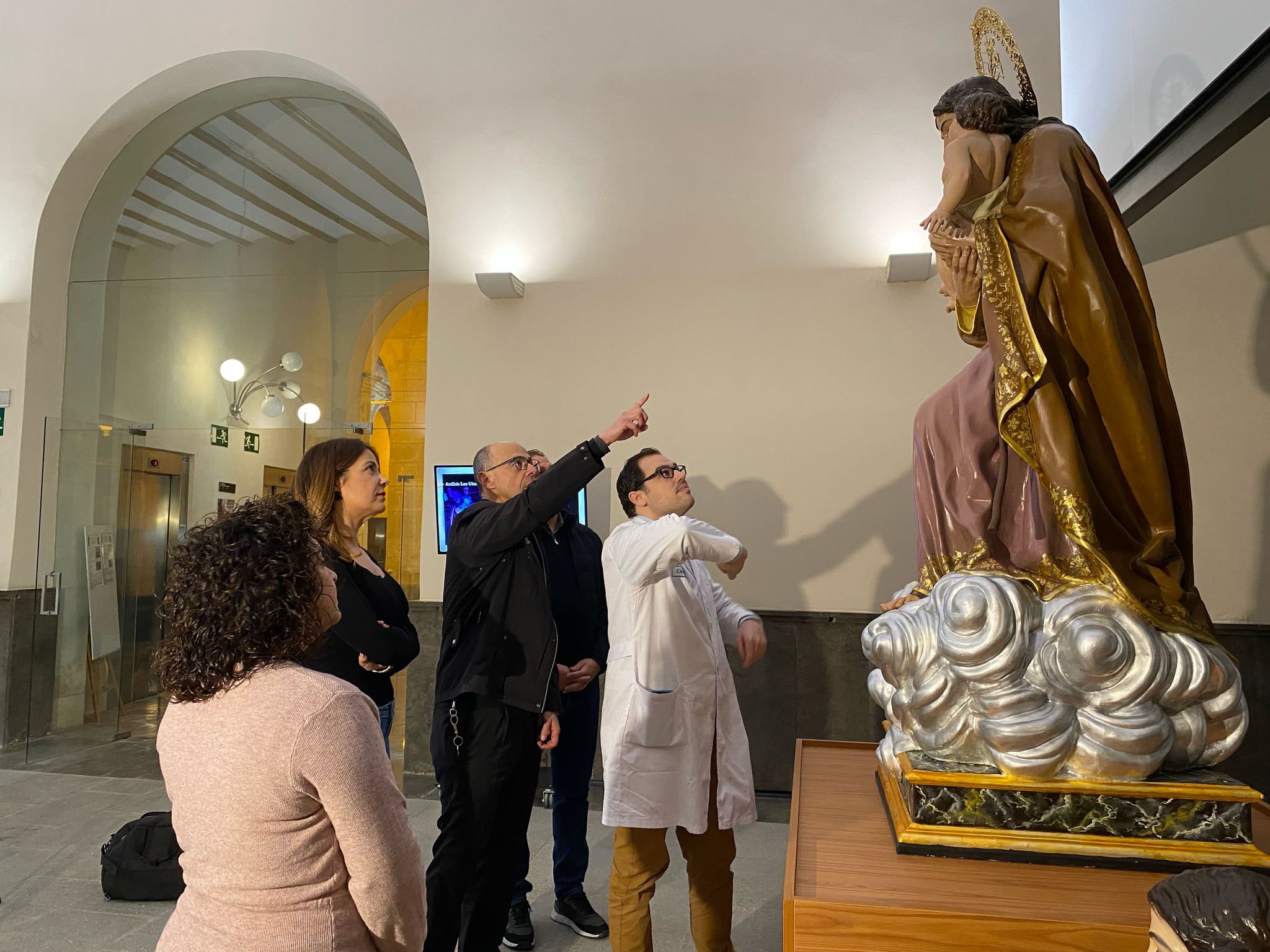El director técnico del museo, Mariano Cecilia, ha dado la bienvenida y ha destacado la importancia de la recuperación de esta imagen, tanto a nivel patrimonial como obra de un escultor de la relevancia de Sánchez Lozano como a nivel devocional. Ha destacado el gran trabajo realizado en el proceso de restauración que ha dirigido el restaurador de bienes culturales, Alfredo Guillén, quien a continuación ha detallado los pormenores de la intervención realizado, destacando que se ha recuperado la policromía original, oculta por repintes y la plata corlada de la nube. Además de documentar todo el proceso de restauración, en donde se han realizado pruebas de luz ultravioleta y radiografías a la imagen escultórica, se ha digitalizado lo que permite documentar exhaustivamente la talla y, en su caso, reproducirla con total exactitud.